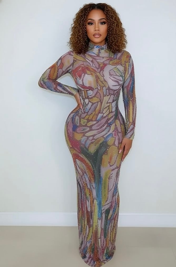 Studded Print Maxi Dress